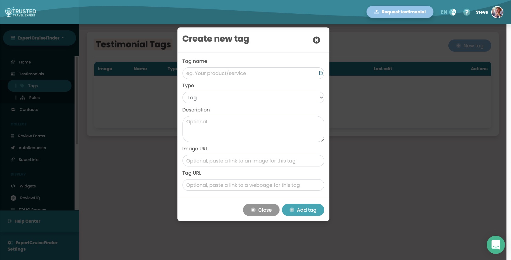 To get started, head to the testimonial tags page.