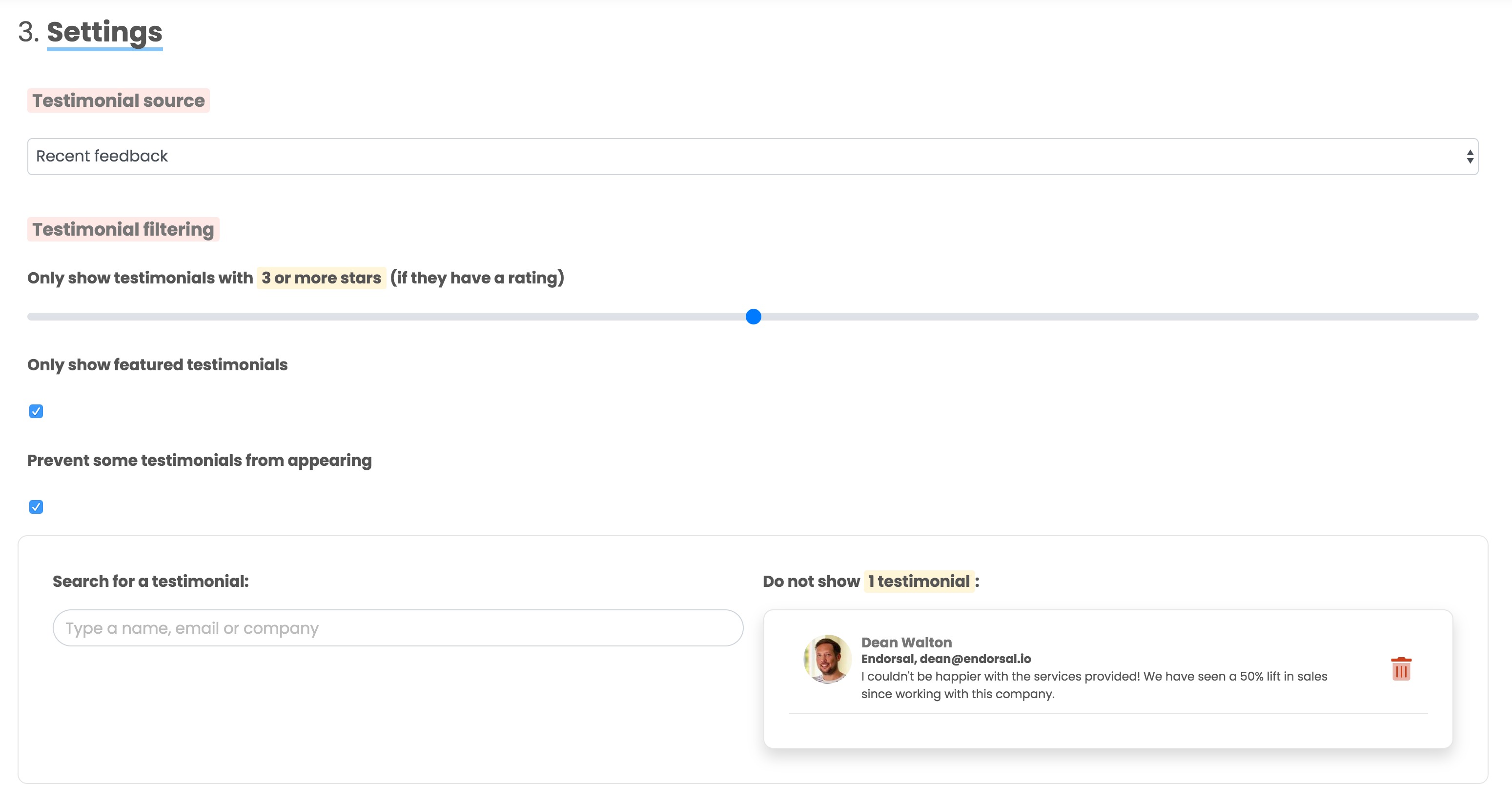 — Prevent some testimonials from showing: add specific testimonials to a blacklist